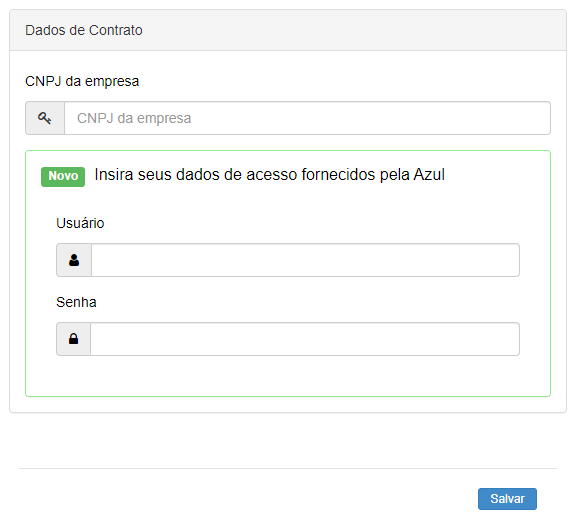 • “USUÁRIO”: digite o seu usuário fornecido pelo sistema da Azul Cargo;