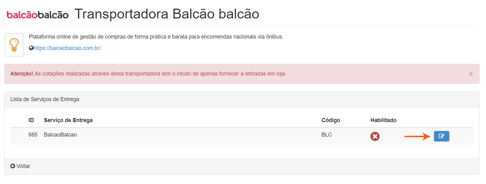4. Saiba como ativar a transportadora Balcão Balcão na Frenet