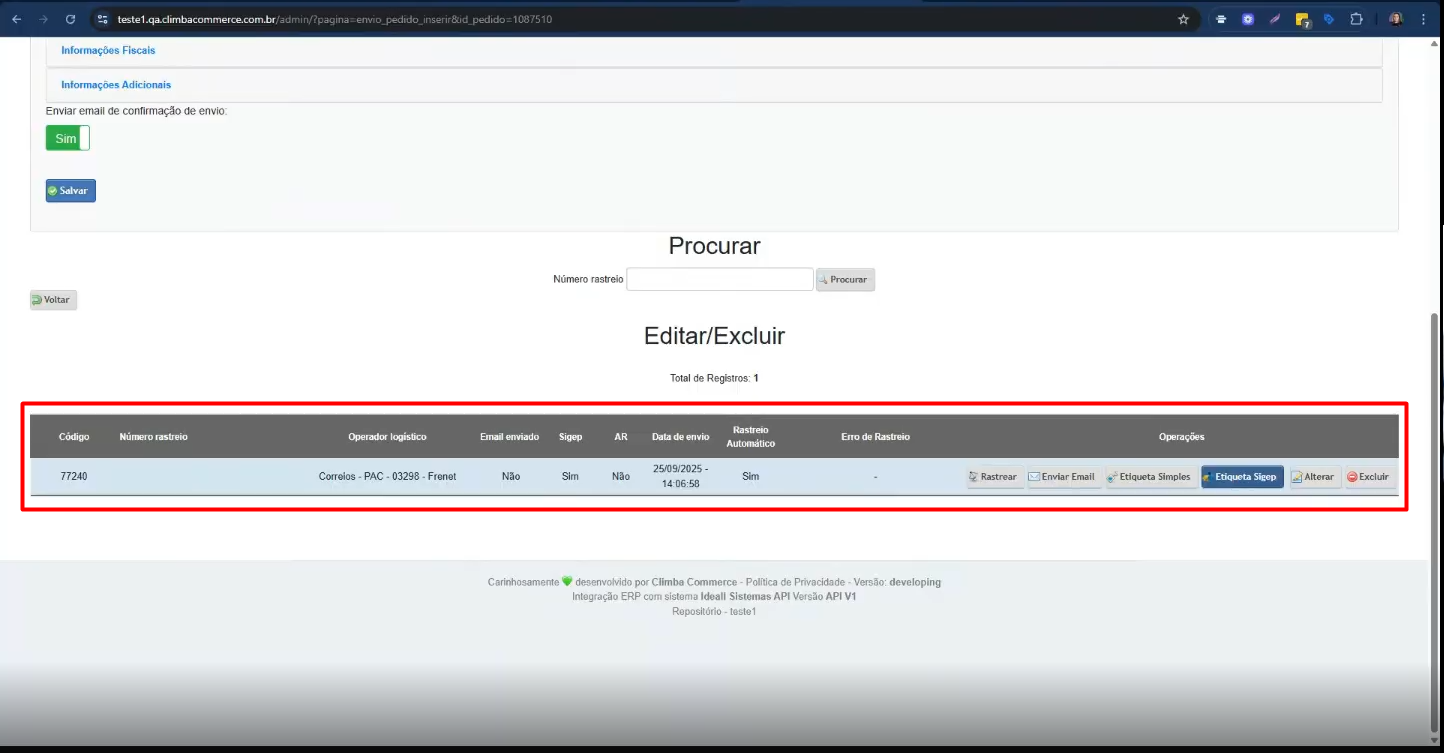 Após realizar esses passos, a plataforma Climba estará integrada na sua conta Frenet.