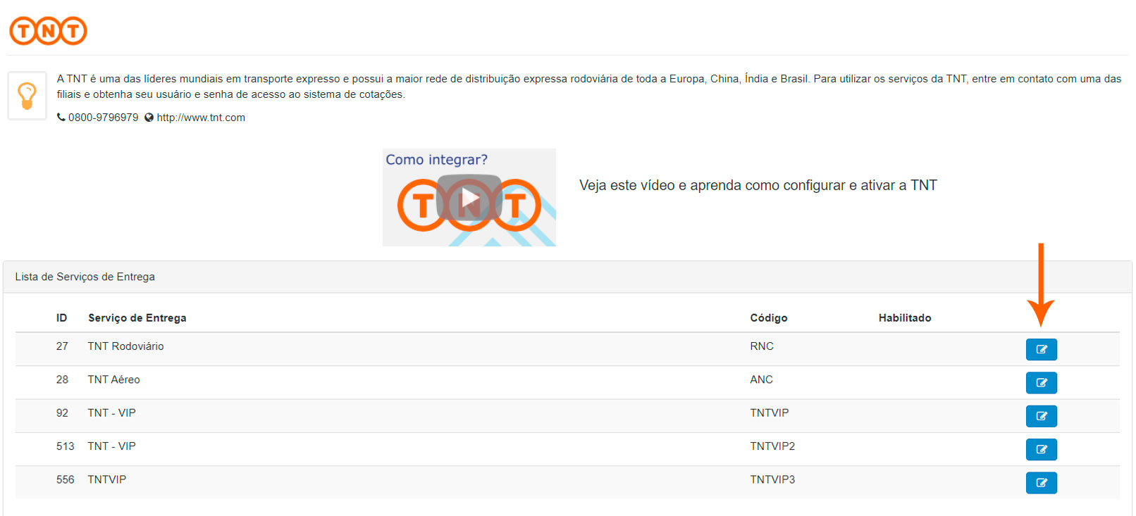 Saiba como ativar a transportadora TNT na Frenet A parceria da transportadora TNT com a Frenet oferece soluções personalizadas de envios. Com a ativação dos serviços TNT, a sua loja virtual garante segurança e oportunidades de vendas para mais de 5 mil cidades do Brasil. Neste artigo, você vai conhecer o passo a passo para a ativação do(s) serviço(s) da transportadora TNT. A configuração é via webservice, com alguns cliques a sua loja virtual já terá acesso aos serviços de transporte. Atenção: para a ativação dos serviços TNT no sistema Frenet, é obrigatório que você já tenha cadastrado seu CNPJ e inscrição Estadual nos dados da sua conta Frenet, pois esses dados são necessários no sistema da TNT. Além disso, você deve ter as seguintes informações: o email de acesso (e-mail cadastrado), o código da divisão e a situação tributária que são fornecidas pelo sistema da TNT. Para obter essas informações, clique aqui e faça o seu login . IMPORTANTE: para ativar qualquer transportadora na Frenet utilizando o seu contrato, é necessário que você tenha assinado um plano Frenet com mensalidade. Com as informações necessárias em mãos, assista o vídeo ou siga o passo a passo abaixo: No site da Frenet, clique em “ACESSAR MEU PAINEL” e faça seu login. Após o login, clique nas opções “MEIOS DE ENVIO” e “TRANSPORTADORAS”, localizada na barra lateral, à esquerda da página; Na seção “Meios de envio disponíveis para cotação na sua loja via seu contrato”, escreva “TNT” no campo de busca e pressione a tecla “ENTER” para efetuar a pesquisa. Em seguida, clique no logo da TNT; Após acessar a página da transportadora, clique no ícone para editar o serviço que deseja habilitar. Caso esteja em dúvida sobre o serviço que irá utilizar, consulte a sua filial da TNT para atendimento; Nos campos da página, habilite e preencha as seguintes informações: “HABILITAR SERVIÇO”: marque esse campo para habilitar o serviço em sua conta; “NOME PERSONALIZADO DO SERVIÇO DE ENTREGA”: este campo é opcional, onde você pode disponibilizar um nome diferente do serviço; Atenção: alterar o nome do serviço pode ter efeito sobre as informações que você terá disponível no pedido em sua plataforma. Sugerimos que avalie os impactos em seus processo e outras integrações. “EMAIL DE ACESSO” (Obrigatório): é o e-mail que o setor comercial da TNT cadastrou como login. Caso não tenha essa informação, verifique com o suporte de atendimento da TNT; “CÓDIGO DA DIVISÃO” (Obrigatório): este código é fornecido pelo setor comercial da TNT. Caso não tenha essa informação, verifique com o suporte de atendimento da TNT; “SITUAÇÃO TRIBUTÁRIA” (Obrigatório): deverá ser inserida para habilitar o serviço. Caso não tenha essa informação, verifique com o suporte de atendimento da TNT; “LIMITE DE ISENÇÃO DE CUBAGEM”: Esse campo é opcional. Preencha caso tenha isenção de cubagem negociada com a transportadora. “CUBAGEM”: Esse campo é opcional. Preencha caso tenha uma diferenciação de cubagem de seus produtos. Através deste valor, multiplicamos o volume dos seus produtos, portanto, influencia diretamente nas cotações de frete. Para finalizar a configuração e ativar os serviços, clique no botão “SALVAR”. Caso haja mais dúvidas, você pode também enviar uma mensagem ao suporte da Frenet pelo e-mail suporte@frenet.com.br. Atualizado em 11 de novembro de 2025 Palavras chaves:contrato própriotransportadoras Este artigo foi útil? Yes No Artigos Relacionados Saiba como integrar a plataforma Vale da Web com o sistema Frenet Saiba como integrar a Frenet com a plataforma Lojcomm TUTORIAL – Integração com ERP Solares Cloud TUTORIAL – Integração com a plataforma Moovin TUTORIAL – Integração com a plataforma eCShop Saiba como integrar a Frenet com a plataforma imprima STORE